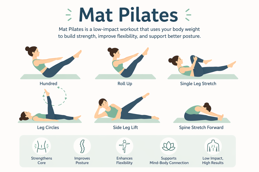 This type of Pilates is simple and accessible, making it a good starting point for learning basic techniques.