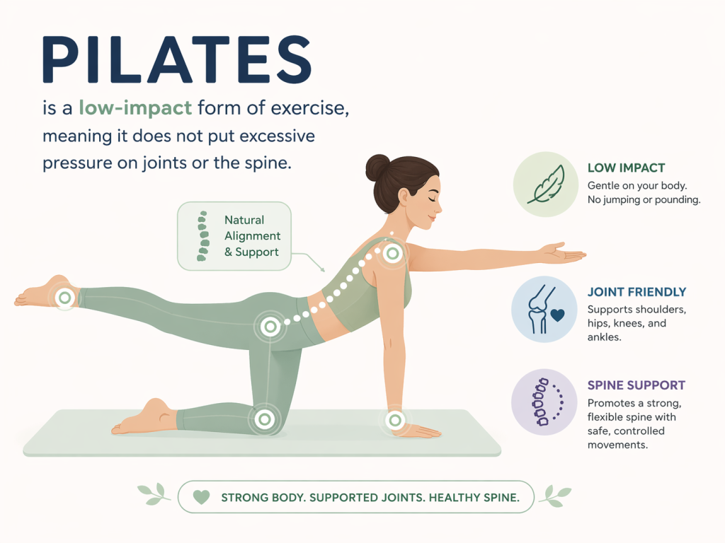 Pilates is a low-impact form of exercise, meaning it does not put excessive pressure on joints or the spine.