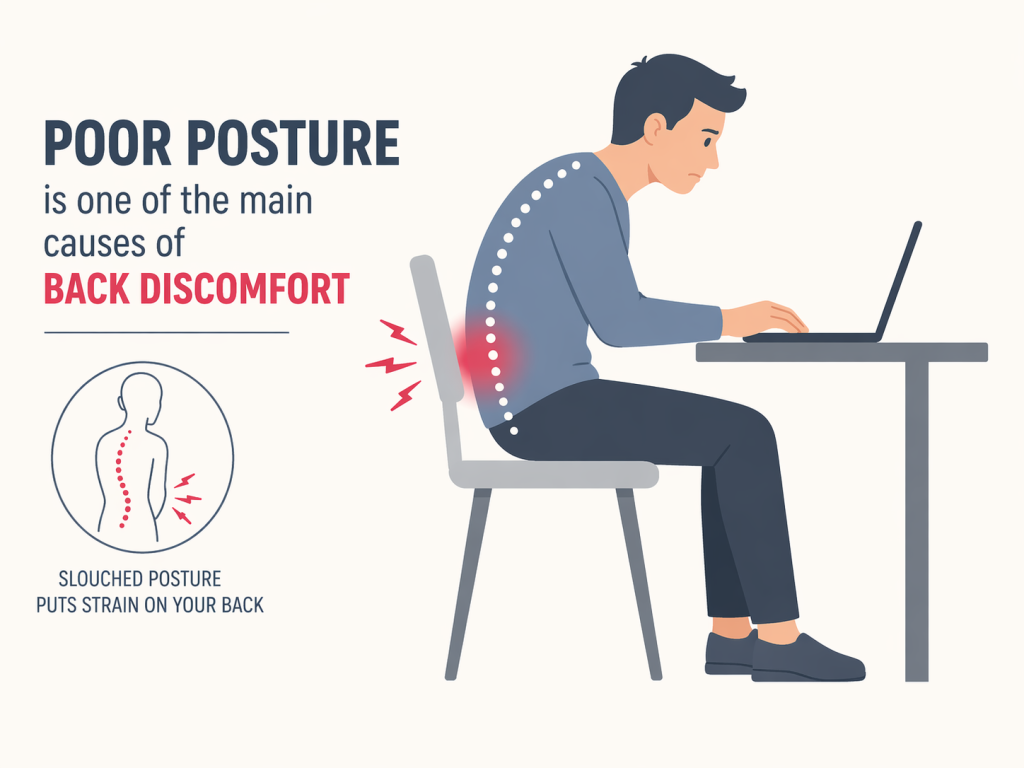 Poor posture is one of the main causes of back discomfort.
