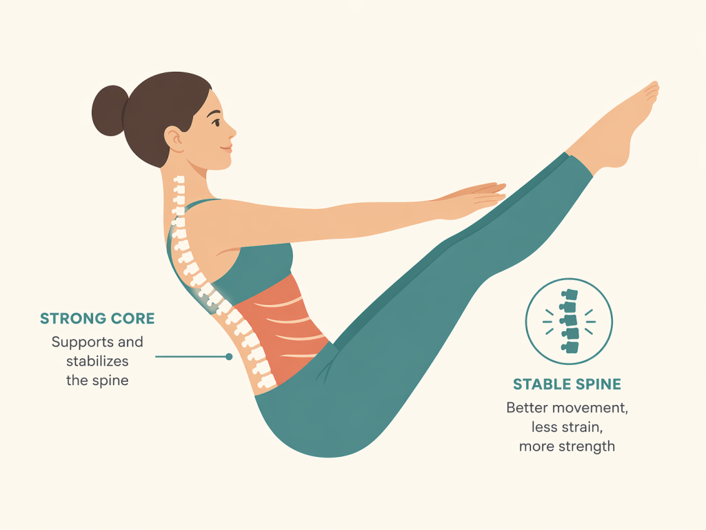 A stronger core reduces pressure on the spine and helps prevent unnecessary strain.